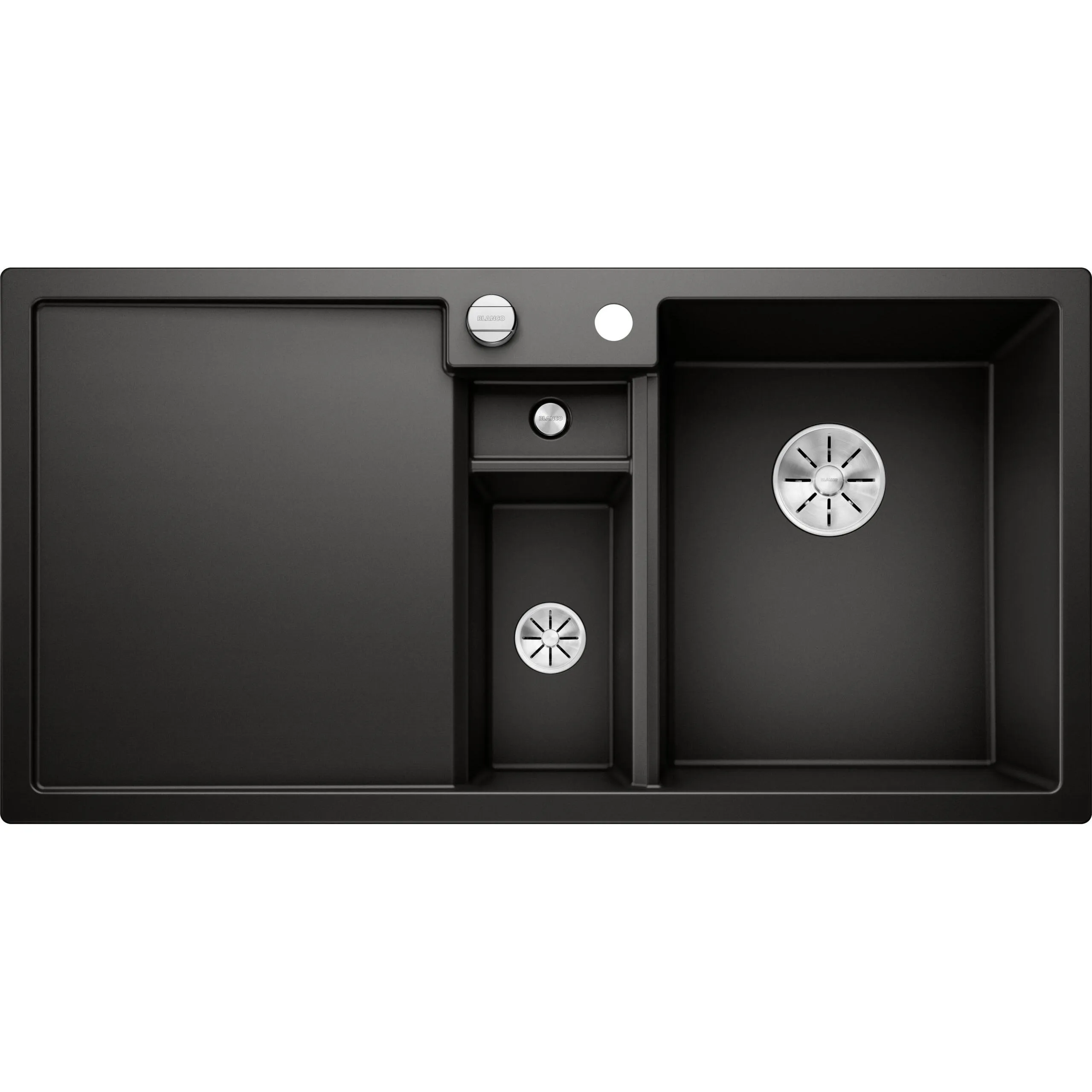 Diskho i innovativ utformning för optimal tillredning av mat och sortering av matavfall i den geniala uppsamlingsskålen i mitten. Möjliggör ett systematiskt arbete i köket. Breddavlopp och patenterade BLANCO InFino avloppssystem med elegant utformad korgventil och styrning av öppning och stängning ovan bänk ingår. BLANCO Silgranit PuraDur består av 80% granit och är överlägset reptåligt och färgbeständigt.